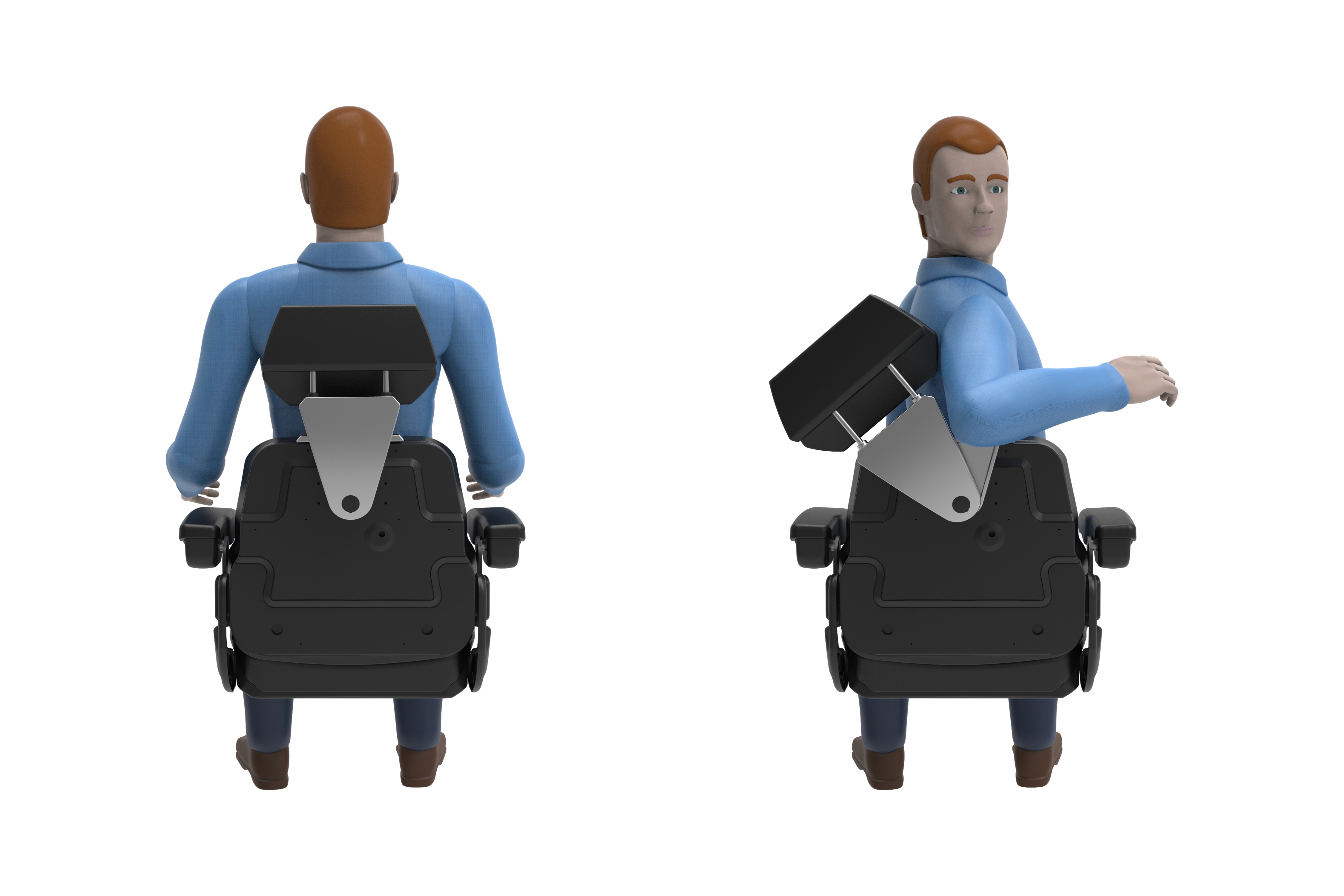 Prolunga universale per schienali di sedili industriali che accompagna la torsione dell’operatore.